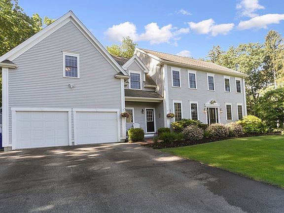 Beautifully maintained & improved upon Colonial sited on a large park-like, level corner lot. It features wainscoted formal living rm open to spacious dining rm adorned with wainscot & tray ceiling; kitchen with generous cabinetry, granite counters/island, new (May 2021) stainless appliances, dining area with sliders to deck & patio; family rm with gas fireplace surrounded by 4 corner windows, & visually enhanced with barn door to 2nd floor great rm. First floor office is perfect work-from-home quiet space. Side entrance mudroom & laundry rm have tiled flooring, & custom cabinetry including seating & cubbies. Lovely private master bedroom has en-suite bath, & walk-in closet with Elfa brand shelving. Bonus 2nd floor sitting rm has a custom window seat & lighting, along with 2 generous storage closets, & transitions into the great rm with space for seating, tv viewing, working out, & even a pool table. Amenities include Reeds Ferry shed with cupola & SunSetter brand awning over deck.