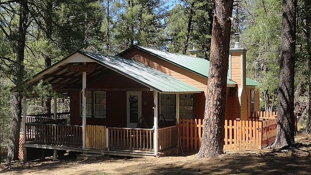 Cozy Cabin located approximately 8 miles east of Cloudcroft in the Twin Forks Ranch subdivision. This 2 bedroom / 1 bath home was remodeled in 2006: new electrical, cherry hardwood flooring in the living room and bedrooms, new kitchen cabinets, new wood burning stove, new tile floor in the bathroom. New metal roof in 2010. The cabin has 2 nice covered decks with a dog rn and plenty of parking with a semi-circle driveway. What a great place to enjoy the New Mexico weather!!!!