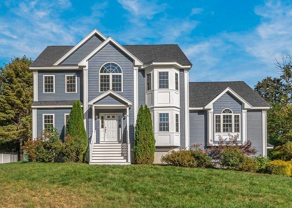 Exquisitely sited on a private 1.74-acre lot in Andover’s coveted South School District, this like-new modern colonial offers the finest in sophisticated luxury. Designed for both elegance & comfort, the open-concept main level is graced with soaring 9’ ceilings, gleaming hardwood floors, & a chef’s kitchen with upgraded finishes flows seamlessly to expansive living & dining spaces. The primary suite features a custom walk-in closet by Closets by Design, while the home’s 4 bedrooms and 3.5 baths include a finished third-floor ensuite with adjoining flexible space ideal for a home office or fitness studio. The finished lower level elevates entertaining with a movie room, game room, & versatile bonus areas. Outdoors, a resort-inspired South Shore gunite heated pool & fire pit anchor the grounds, complemented by a private sports court and ample open space. With town water, sewer, & short drive to downtown, this residence delivers a rare fusion of sophistication & timeless appeal.