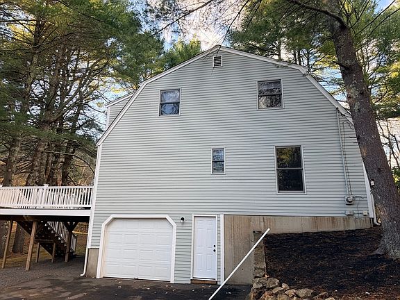 Welcome home to this beautiful gambrel located on a private 40,000 square foot lot set back from the street with a circular driveway and a garage under .This home has an entrance hall that leads to a fireplaced living room, a sunroom with newly installed French doors opening to an oversized deck. The kitchen has been updated with wood cabinets, tiled floors and tiled backsplash and quartz countertops leading to a second deck to enjoy the yard. Also on the main level is a full laundry room with a half bath and a main bedroom. On the second level there are 2 bedrooms, one with a half bath and a skylight, and a full bath in the hall. An extra room with a closet can be used as an office. The septic system is 3 years old in the front yard and the roof is approximately 7 years old. There is a new state of the art heating system with 2 zones. Appliances to stay as gifts.Truly a gem. Open house Sunday 11/9, 12-2 pm
