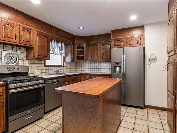 This spacious high ranch offers 3 generously sized bedrooms and 1 full bathroom on the second level. The heart of the home is the eat-in kitchen, featuring GE stainless steel appliances, a center island, and an abundance of cabinetry perfect for cooking and entertaining.