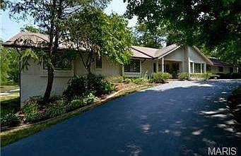 Back on Market! Fantastic, updated 6 bd/6 bth ranch on .5+acre lot in Creve Coeur. Open flr plan w/ 6500+ sqft of living spc incldng finished lower level & covered pool. Tons of natural light thru numerous windows & skylights. Vaulted Great Rm features fireplc, custom built-ins, wet bar & terrific pool views. Separate Dining Rm w/ coffered ceiling. Gourmet Kitchen w/ plenty of custom cabinets, granite at island, tile flrs & desk opens to beautiful Sun Rm. Coffered Mstr Ste has walk in closets, private dr to pool & His & Her Mstr Bths (w/ shared commode). 2 addtnl bdrms w/ built-in desks, share Jack & Jill bth. Mn flr Laundry w/ cabinets & sink. Lower level has huge Family Rm w/ fireplc & built-ins, Play Rm, Office, Wine Cellar, 3 addtnl bdrms, 2 full bths & 1 half bth. Aggregate patio overlooks parklike yard w/ pond, tree house, electronic fence & elaborate landscaping. Other features:inground sprinkler, fountain, central vac, intercom & newer zoned HVAC.