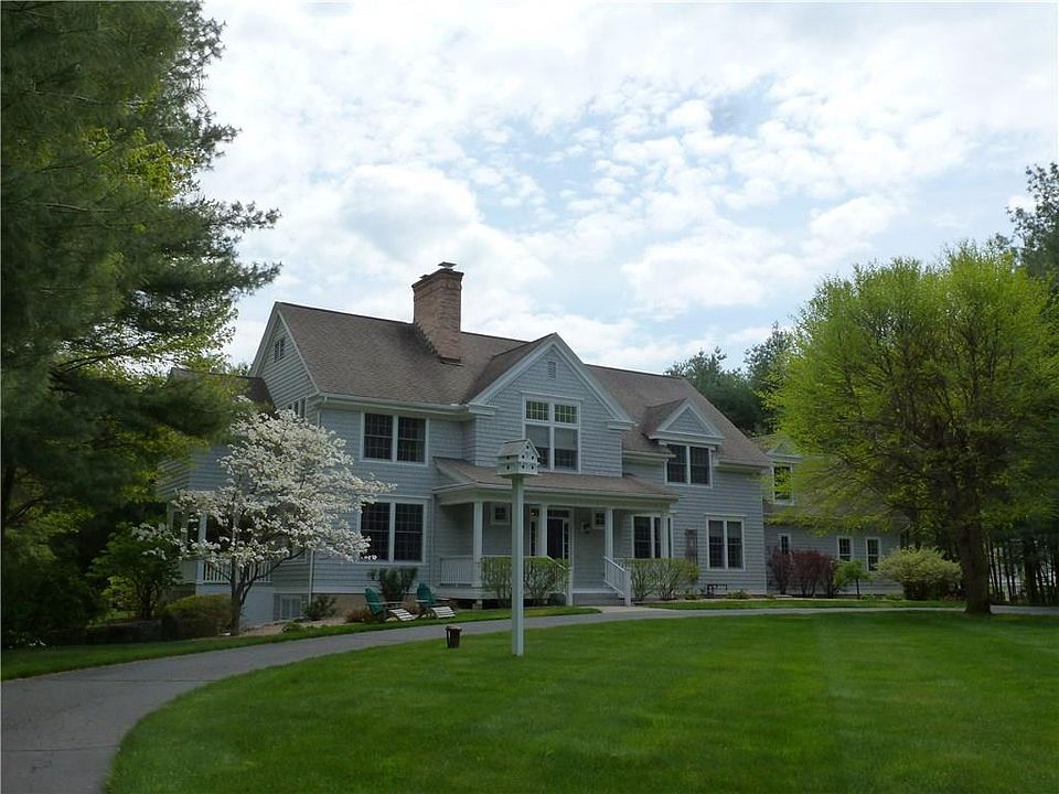 Gorgeous Nantucket style home situated at the end of the cul-de-sac in a sought after neighborhood! Minutes to RT.44 with shopping, restaurants and all the amenities! The wonderful curb appeal offers a circular driveway and welcoming front porch. The open floor plan is perfect for entertaining with a lovely foyer welcoming you into the fireplaced living room with a covered porch and the pillared formal dining room. The library is set privately with French doors and numerous built-ins. It has the perfect kitchen, a chef's delight with upscale appliances, granite countertops and eat-in area all opened to the fireplaced family room, Ideal for all those family gatherings. The upper level has a special area with a built-in desk, bookcases and a wall of memories for all those special photo moments. The fireplaced master bedroom is set privately with a newer luxurious bath and great walk-in closet. There are three more bedrooms and two more full baths along with a spacious bonus room(possible 5th) to complete the second floor. The lower level has a workout area and a temperature controlled wine room. Relax on the screened porch as you view the beautiful level yard surrounded by open space, the ultimate private backyard ideal, for sports activities!