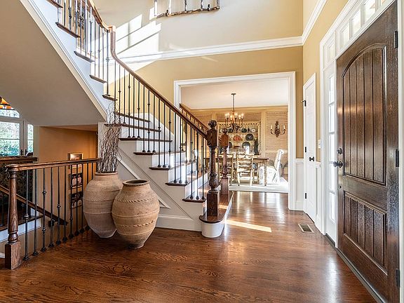 Vacation at home in this custom French-Country style home offering the perfect blend of old world charm & modern day luxury. Sophisticated design elements highlight its many special features including a gourmet kitchen of creamy white glazed wood cabinetry, a large contrasting granite island & Thermador appliances. The adjacent family room is spacious yet cozy with cathedral beamed ceiling & an over-sized stone fireplace. The living room is accentuated by solid antique wood beams & home to another impressive limestone fireplace.The flexible floor plan includes a first floor office & additional first floor room that may be used as a 2nd office or 5th bedroom. A luxurious master suite features a separate sitting area, an exquisitely tiled bath with soaking tub & shower. Stunning tile work is featured in all of the bathrooms. A well-appointed lower level includes an exercise room, guest room, media room & custom wine bar which lends itself beautifully to the exterior stone patio beyond.
