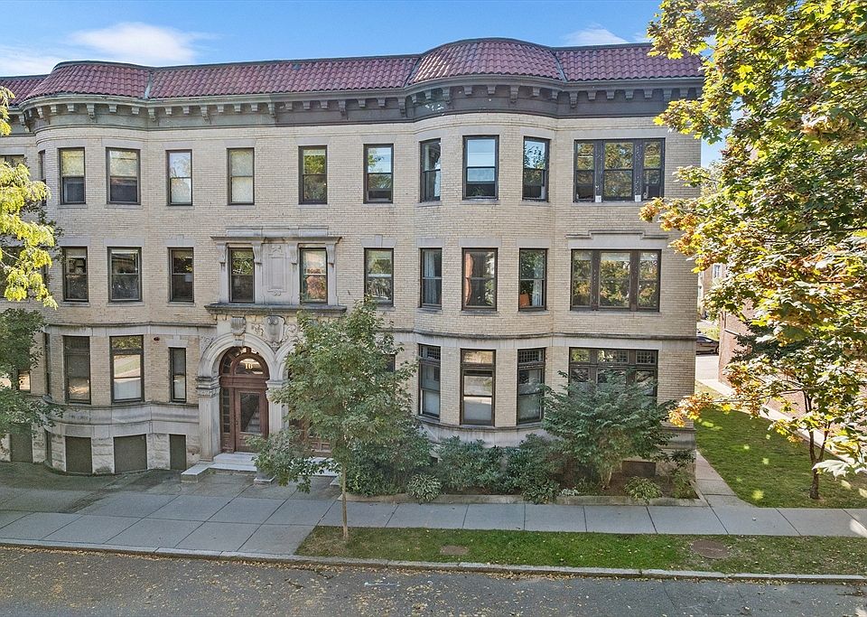 Tucked away on tree-lined Browne Street near Coolidge Corner, this rare and expansive floor-through 4-bedroom home includes an exclusive 2-car garage plus an additional off-street space—three dedicated parking spots in total. A gracious foyer opens to sunlit, generously scaled rooms, including a fireplaced family room and oversized living and dining areas. The updated eat-in kitchen features new appliances, stone countertops, and ample storage. A private hallway leads to four bedrooms, two full baths, and a peaceful three-season porch ideal for a home office or reading nook. With central air, high ceilings, large private storage in the basement, and original architectural details, this home blends classic charm with modern comfort. Set in a well-maintained, 100% owner-occupied building with a newer roof, boiler, and updated electrical. Just moments to the B & C lines, top schools, local parks, and Coolidge Corner's shops and restaurants—this is Brookline living at its best!