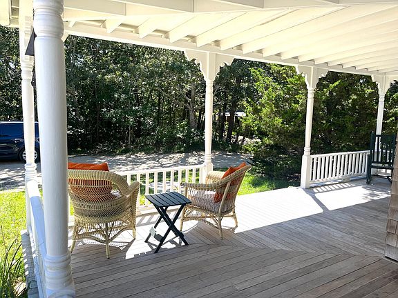 Embrace the history and character of this delightful 1870's Oak Bluffs cottage. Formerly the Laura Thomas Smith House, it was relocated from the Vineyard Highlands area, nestled in a quaint neighborhood close to the center of town and the harbor. It was documented in a 1978 Oak Bluffs Historical Survey and has been in the same family for 98 years. This cottage features a sun-filled living room, vintage kitchen, one bath and mudroom on the first floor, with all 3-bedrooms on the second floor. The cottage radiates timeless appeal, with its painted pine floors, exposed beams, inviting covered front porch, and a second-floor deck to take advantage of the summer breezes. The home was upgraded with a new septic system in 2022, plumbing and 4 Mini splits for heating and cooling as well as other improvements along the way including an architectural roof, shed and hot water heater. With its ideal location, this cottage is a short stroll to all the attractions of Oak Bluffs, including the harbor, the library, restaurants and shops. Established rental history