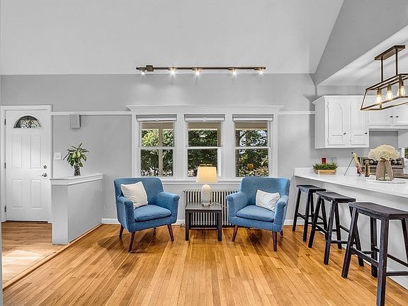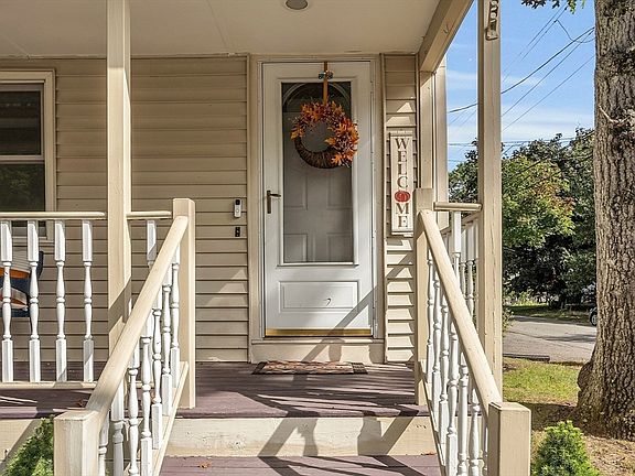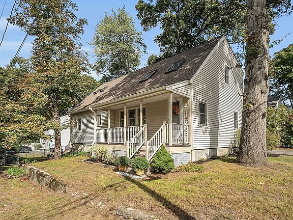Welcome to this stunning 3+ bedroom home, offering a perfect blend of style and functionality! The open-concept first floor boasts a bright and spacious kitchen with stainless steel appliances, quartz countertops, and a seamless flow into the dining and living areas, all enhanced by beautiful hardwood floors. Two flexible rooms can serve as first floor bedroom, an office/den, or a home gym. The first-floor bath features a gorgeous tiled shower. Upstairs, the primary bedroom connects to a full bath with skylights, plus two more bedrooms. Enjoy the convenience of first-floor laundry with the option for a second-floor setup. The wrap-around deck offers a peaceful retreat overlooking the fenced in yard, perfect for entertaining. A charming front porch, generous basement with lots of storage, and close proximity to Commuter Rail complete this must-see home!