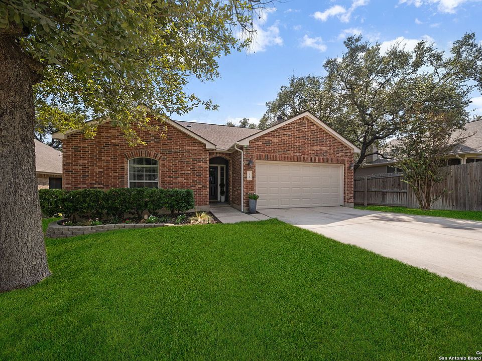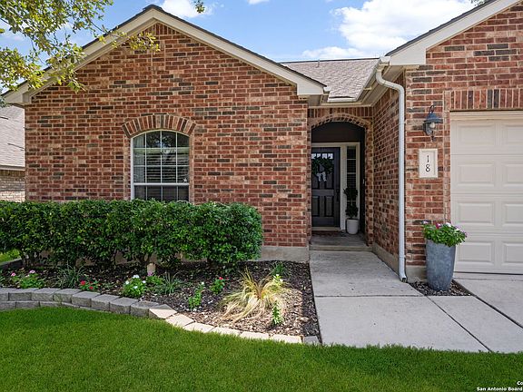 Nestled within the gated community of Finesilver Ranch, this home provides a secure and serene environment, complete with a host of exclusive amenities. Discover the perfect blend of comfort and convenience at 18 Canterview, San Antonio, Texas. This stunning residential property offers a seamless living experience with its thoughtfully designed layout and updated modern amenities. Step inside this beautifully maintained one-story home, boasting 1,544 square feet of living space. With three spacious bedrooms and two well-appointed baths, this residence is ideal for those seeking a comfortable and functional living space. The interior features granite countertops in kitchen and both bathrooms as well as a brand new oversized kitchen sink and brand new modern sinks in both bathrooms. The separate dining room is perfect for hosting gatherings, while the vinyl wood flooring throughout the main areas ensures easy maintenance and a polished look. The exterior of the home is equally impressive, with a classic brick facade and a charming extended outside patio, perfect for outdoor relaxation and entertainment. The level lot and driveway provide easy access. Residents of Finesilver Ranch enjoy access to a range of community amenities, including a clubhouse, pool, playground, and basketball court. A pickleball court is also coming soon, offering even more recreational opportunities. The home has a security sytem, ensuring peace of mind, and features high-efficiency appliances. Located within the highly regarded Northside school district and with easy access to 1604, this property combines convenience with a tranquil lifestyle. Don't miss the opportunity to make this exceptional home your own. Schedule a showing today and experience the best of San Antonio living.