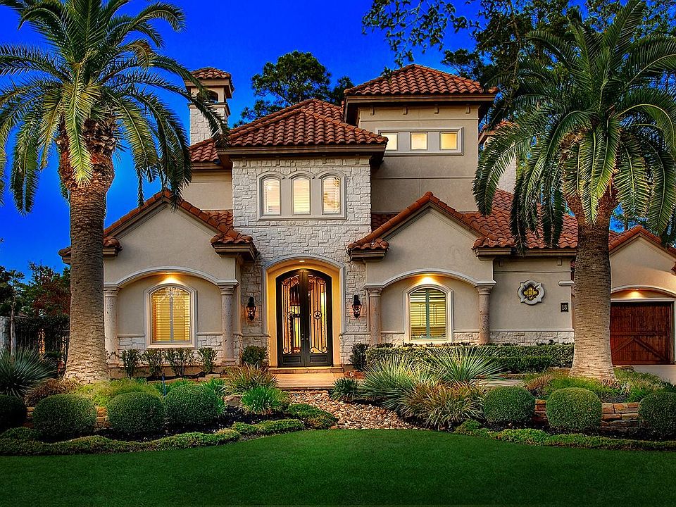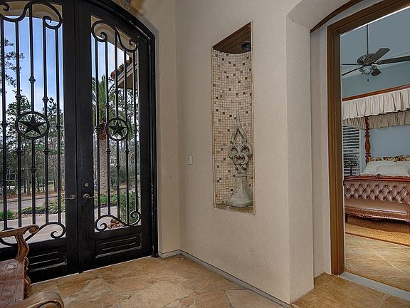 Stunning curb appeal with this Mediterranean style custom home in 24 hour guard gated Carlton Woods Nicklaus! Located on a corner lot, this home features an elevator, extensive tile and hardwood flooring, plantation shutters, art niches, detailed trim work and an abundance of storage. The well appointed island kitchen with stainless steel appliances, breakfast bar, under cabinet lighting and walk-in pantry opens to the sunny breakfast room and den with tray ceiling and gas log fireplace; adjacent to the formal dining room is a wet bar with wine grotto and chiller; wood paneled study has French doors and a coffered ceiling; the sun room is perfect for relaxing with a good book; casita with full bath and kitchenette; owner's retreat down features a cozy fireplace, two spacious walk in closets and a plush bath with sauna; two bedrooms and game room up with balcony overlooking the sparkling pool with waterfalls and spa; three car attached garage; outdoor kitchen and fireplace too!