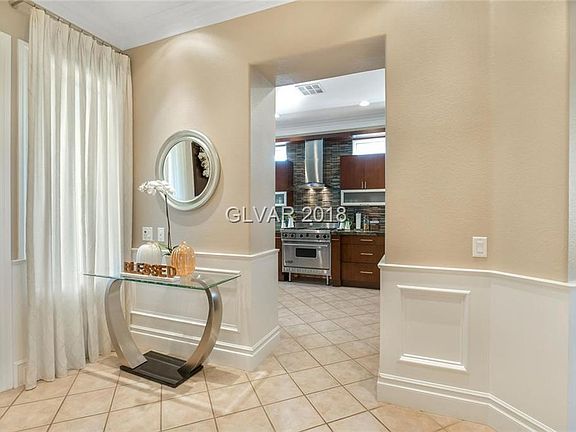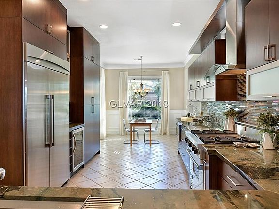 Upgrades galore! SS Thermador & Viking appliances w/wine frig, rich quartz ctops, custom mocha/glass panel cabinets, cozy kitchen nook as well as breakfast bar, lots of storage, large great room w/media wall TV's included, master has French door to covered patio & rear yard, raised seating area. Built in shelves in bdrm #2. Washer/dryer included.