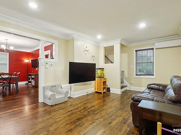 This beautifully renovated 3-bedroom Colonial features gleaming hardwood floors throughout and is situated in the heart of Bergenfield, offering proximity to parks, schools, downtown shopping, and public transportation. The expansive covered front porch leads to the front door, where a large entry foyer/mudroom with a spacious closet awaits. The first floor boasts high ceilings with crown moldings, recessed lighting, a spacious dining room, an ample family/living room, a powder room, and a modern kitchen with access to the deck, big backyard, and full basement. The second floor includes the primary bedroom, two additional bedrooms, and a full bathroom. The residence is equipped with both baseboard heating and complemented by 5-zone ductless air conditioning/heating system. A large driveway accommodates up to eight vehicles and leads to a detached garage with storage. This wonderful property offers comfortable and attractive living.