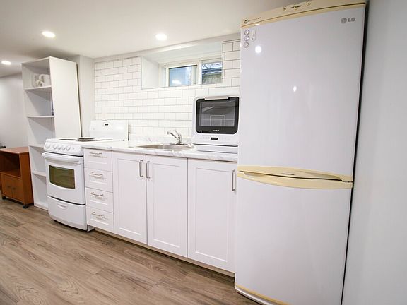 Private laundryPrivate entranceOpen-concept kitchenWhite appliances