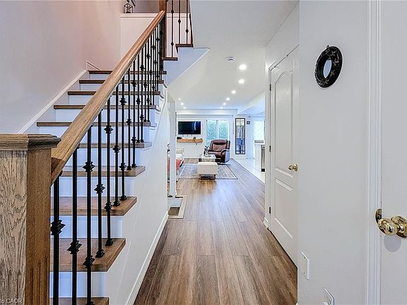 Beautifully updated 3-bedroom, 3-bathroom condo townhouse in the heart of Grimsby. This inviting home features a bright, open layout with upgraded flooring on the main level and a modern kitchen with refinished cabinets (soft-close doors & new hardware), sleek quartz counters, and an upgraded sink & faucet. Upstairs, youll find 3 comfortable bedrooms including a primary suite with an upgraded ensuite shower. Custom built-in cabinets and cubbies in all bedrooms and linen closets provide practical storage solutions. The upper landing offers a flexible work-from-home space/loft that can comfortably accommodate two people. The finished basement includes a 3-piece bathroom and comes complete with three stylish modern storage units, making it ideal for guests, a home office, or recreation. Additional highlights include hardwood staircase upgrades, a custom dining room cabinet and showcase unit, and a cozy backyard deck for outdoor enjoyment. Located close to schools, parks, downtown Grimsby, lakefront trails, and with easy QEW access, this home offers both convenience and comfort for families, professionals, and commuters. A thoughtfully upgraded home ready to welcome its next owners book your showing today!
