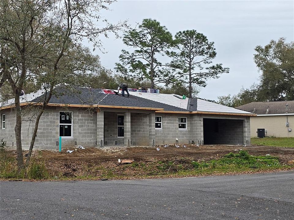 Under Construction. tep into luxury with this expansive 3-bedroom, 2-bathroom haven, featuring a 2-car garage, a charming lanai. The split plan design effortlessly guides you through a residence adorned with elegant granite countertops in the kitchen and bathrooms, complemented by resilient lifetime tough vinyl flooring. Guest rooms, generously proportioned, offer flexible furnishing options, while the main bedroom boasts a tray ceiling and separate closets for an added touch of luxury. A well-appointed kitchen, complete with an island and ample storage with whisper quiet cabinetry throughout, your home will come fully equipped with a stove, fridge, dishwasher & microwave. The adjacent laundry room ensures practicality with easy access to the garage. Double doors open to an expansive back lanai, a perfect space for relaxation or entertaining. Overlooking a generous .25-acre yard CORNER LOT! This home, nestled in the desirable Silver Springs subdivision, is not bound by HOA restrictions. You are free to bring all of your toys, build a workshop, install a pool, fence, and still have some grass to mow! Equipped with a well and septic system, it offers convenience of no utility bills. Situated within proximity to major grocery stores like Walmart & Publix, diverse dining options, medical facilities, a post office, and general stores, this property seamlessly blends comfort with accessibility. As an added bonus, the downtown square is a mere 15 minutes away, ensuring easy access to the city's vibrant heart. The finishing touches are underway, and completion is imminent. Seize the opportunity to make this extraordinary property yours!