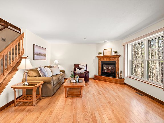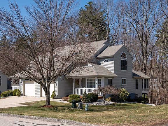 Highly sought after Centerview Hollow duplex style townhouse with almost 1800 sf of pristine living. Instant curb appeal with covered front entry to warm and inviting sunlit foyer. Expansive kitchen with bumpout breakfast nook, upgraded stainless appliances and warm toned quartz countertops. Powder bath and laundry are easily accessible. Open, airy, thoughtful floorplan highlighted with blonde toned wood floors throughout the main level. Ideal entertainment flow, dining/living with gas fireplace opens to four season sunroom accented by rustic wood plank walls and ceiling. Plush newer carpeting to second level with two generous sized bedrooms. Primary en suite with vaulted ceiling and oversized mulled window and half rounds filtering beautiful natural light. Full bath and 3/4 guest bath complete this well designed space. Lower level with high ceilings, full windows and sliders overlooking wooded outdoor space with future potential for finished flex space. Updates include roof, septic system, heat, hot water tank and full house Kohler generator. Attached direct entry garage, ample parking and solid, professionally managed association add to the value of this beauty. Original Owners have impeccably maintained this gem and it's ready for its new Owner. Minutes to major highway access, shopping and MA border. Showings start at OPEN HOUSE Saturday 4/5 and Sunday 4/6 10am-Noon.