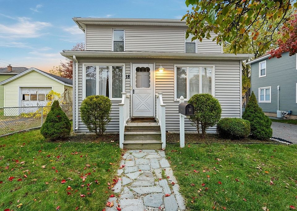 Discover exceptional value and modern comfort in this beautifully remodeled 3-bedroom, 2-bath Colonial offering 1,395 sq ft of stylish living space. Set in a desirable neighborhood close to area amenities, this home blends classic charm with today’s updates. The first floor showcases a spacious kitchen with stainless steel appliances and a restored tin ceiling, complemented by a dining room, living room with sliders to a 24x14 composite deck, a convenient half bath, and a sun-filled south-facing sunroom. Upstairs, three bedrooms feature beautiful hardwood floors and an updated bath. Recent upgrades include a high-efficiency heating system, central air, new roof, windows, plumbing, vinyl siding, and flooring. The fenced backyard provides a private, low-maintenance retreat perfect for relaxing or entertaining. A one-car garage with a workshop adds extra functionality to this move-in-ready gem.