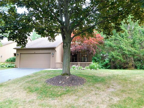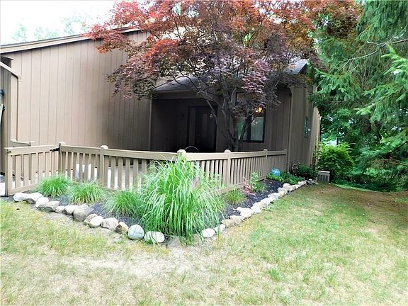 Spacious Penfield condo with 3 sample size bedrooms, loft which can easily be converted to an additional bedroom, 1st floor master suite with walk-in shower and walk-in closet, 1st floor laundry room, finished walkout lower level with added square feet not counted in the total living area, gas fireplace, vaulted living area with wood burning fireplace, updated eat-in-kitchen with new appliances and granite counter tops, updated bathrooms, engineered hardwoods and brand new carpeting. New vinyl thermopane windows, Jacuzzi jetted tub, new sump pump, 2 car garage, deck overlooking woods and a maintenance free exterior.