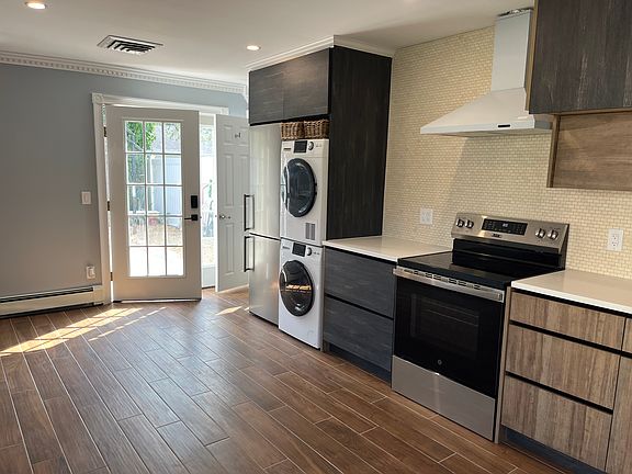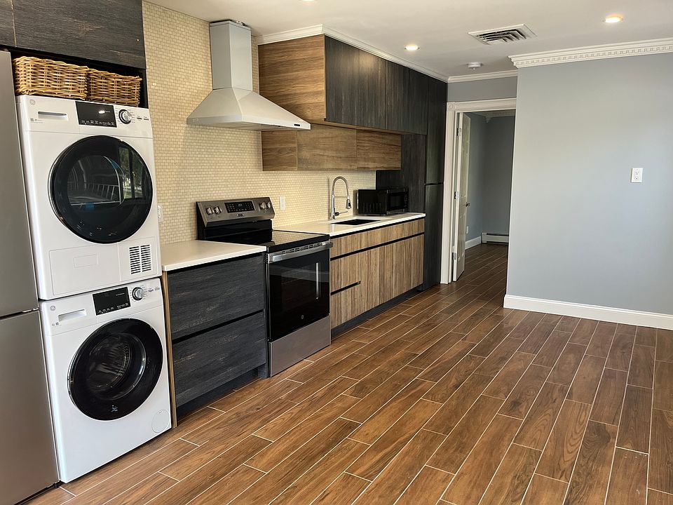 This gorgeous brand new main floor apartment features private entrance, living room, eat-in-kitchen, 1 bedroom, full bath, washer/dryer, central air, private patio, and street parking. $2000 includes all. Subject to Broker's fee (equal to 1 month rent,) income verification, credit check, and security deposit. No smoking.