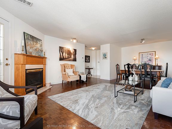 Ravine. Sunny and spacious at approx. 1460 SF. 2 bedrooms, 2 full baths. All Rooms Overlook Ravine. Huge living room with gas fireplace creates toasty ambiance. Perfect for fall & winter evenings. Dining Rm easily accommodates 8-10 ppl. Perfect for family gatherings. Expansive balcony with legal gas BBQ, lends itself perfectly to outdoor summer dining & entertaining. Feel the warmth of sun-drenched mornings & afternoons from your Eat-In Kitchen & Balcony, while overlooking idyllic, award winning, professionally landscaped Courtyard. Freshly painted. Excellent layout awaits your personal touch. Create your ideal home. All the essentials are in place. Generous primary bedroom, fits king bed and features ensuite bath with large accessible, roll-in shower. Enjoy breathtaking ravine views from floor to ceiling windows. Large separate pantry and separate laundry rooms to provide ample storage. Ensuite hot water tank & heat pumps owned by condo corp. No cost to owners to repair, replace or maintain. Ensuite alarm wired to 24 Hr Security at Front Desk, (no rental contract to assume). Suites individually metered for hydro efficiency. Only pay for what you consume. Superb 5 star amenities include indoor salt water pool & whirlpool. Gym, billiard and card rooms, workshop, fully furnished guest suite. Elegant party room with full kitchen, wet bar, dance floor, gas fireplace & terrace. Stunning library filled with an excellent assortment of books and videos. Tennis court, car wash bay, fenced in dog run, garden plots & potting room. On-Site Superintendent, Property Manager and 24 Hour Uniformed Concierge/Security. Active Social Committee plans cultural events, dinners, parties, annual BBQ, stretch & exercise classes, aqua fit, book club, movie nights and more! Walk to Groceries, Coffee Shops, Aga Khan Cultural Centre. Close to Vibrant Shops at Don Mills Restaurants, VIP Theatre & Stores. Future LRT. Excellent busses to subways. Convenience to DVP/401. Pet Friendly Building.