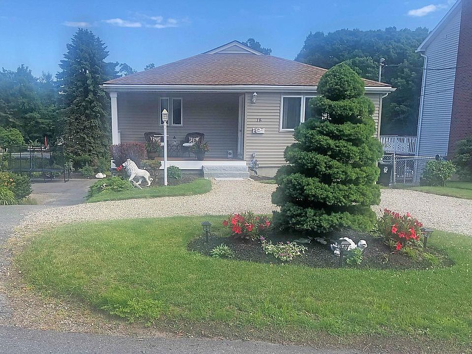 Single Family Ranch Style Home with an in-law in the walk-out basement. First floor features 2 bedrooms and two full bathrooms. Large open floor plan with farmer's porch in the front yard and deck in the backyard. Backyard deck overlooks a beautiful yard with a waterfall and lots of perennials. The in-law in the lower level has 2 bedrooms and one bathroom, 10 feet ceilings and an open floor plan. Perfect home for the extended family. Huge detached 3-car garage built new in 2016. Updates: new roof, new vinyl siding, new farmer's porch. Approximately 3,000 sq. ft. of living space Lot size - 14,244 sq. ft. Showings start immediately. Please call or text Carol at 781-929-1010.