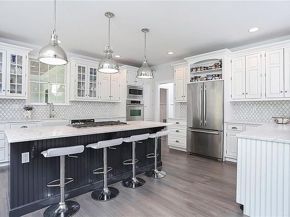 GREAT WEEKEND HOME 1 HOUR FROM NYC. MOVE-IN READY CHIC AND INVITING IMMACULATE custom estate boasts 6500 SF sq. ft. on 3 richly appointed levels of living space with architectural millwork and bright sought after open floor plan. This home has been completely renovated and updated and features 5 bedrooms, 4.5 baths and 2 fireplaces all perfectly sited on 3+ acs w/ sweeping lawns, charming gardens & specimen plantings. Absolute privacy (surrounded by forever green space on 3 of 4 sides of property) and incredible property. Grand 2-story entrance foyer, banquet-size dining rm, living rm w/ fireplace, study, half bath, gourmet chef's kitchen, sunlit breakfast room opens to family room with fireplace. 1st flr optional 5th bedrm or 2nd office w/ full bath, custom designed mudroom w/ built-ins, coat closet, pantry w/marble bar, ice maker & freezer. Finished walkout lower level has sliders to impressive stone entertaining patios, outdoor kitchen, sweeping level lawn and heated pool.