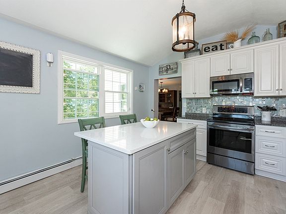 Don't miss this Great Opportunity to live in Windham and enjoy a Free One Year Home Warranty! Charming 3 Bedroom Updated Farmhouse loaded with Natural Light. The Large, Newer Kitchen features a Vaulted Ceiling, Granite and Quartz Countertops, Eat In Island, a Tile Backsplash and Stainless Steel appliances. It’s perfect for gatherings. Adjacent to the Kitchen is an Open DiningRoom, a Living Room, and a versatile Playroom or Office Space. The home boasts Hardwood Flooring throughout and Updated Bathrooms with Granite counters. Upstairs, the spacious Primary Bedroom also has a Cathedral Ceiling, creating an open and airy feel. Two of the three Bedrooms feature Wide Plank Knotty Pine Floors. Outside, you’ll find a large fenced-in backyard that abuts the Rail Trail. The property also includes a Storage Shed set up for a golf simulator and an outdoor play area. Enjoy breakfast or lunch at the nearby Windham Junction and benefit from the highly sought-after Windham schools!