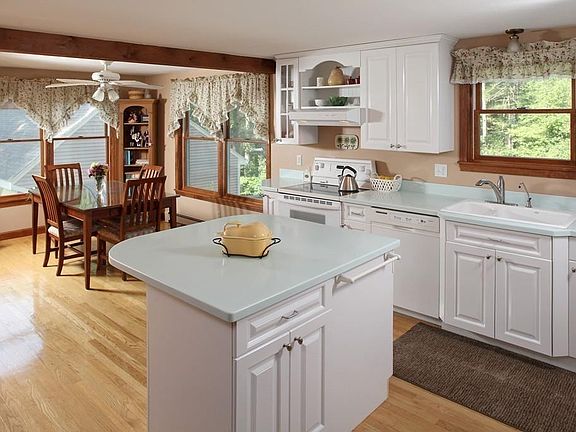 Remarkable expanded cape! Beautiful cul-de-sac neighborhood! This lovely home has 4 bedrooms, 2 full baths, and amazing space for entertaining. Updated spacious kitchen with open floor plan, Corian countertops, huge center island, and breakfast nook for additional seating. The dining room is perfect for holidays with plenty of space & second entrance for guests. Open common area leads to first floor master with a walk in closet and connecting master bath. Sunlit living room is simply stunning with cathedral ceilings and cozy gas fireplace. Sparkling hardwood floors through out, 3 additional bedrooms, and full bath on the second floor.The partially finished basement has a side entrance & amazing potential for future expansion. Enjoy the custom built patio, screened in porch, bonus three car garage!! Brand new roof to be completed prior to close! Newer windows and water filtration system.Private 1.4 Acre lot & Just minutes to schools, shops, and highways!Welcome home!