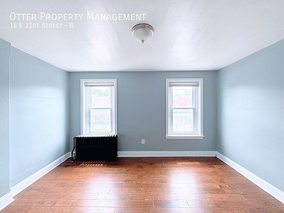 Discover roomy comfort and everyday convenience in this 2-bedroom, 1-bath apartment at 18 E 21st Street - Unit B, offering over 1,500 sq ft of living space in a peaceful residential setting. With a large layout, charming porch, and laundry hook-ups ready for your own setup, this unit is perfect for renters seeking space and functionalityall within a quiet, commuter-friendly neighborhood. Features: Expansive Layout: 1,524 sq ft of living spacerare for a 2-bedroom Outdoor Perks: Enjoy fresh air and morning coffee from your own front porch or deck Laundry-Ready: Washer/dryer hook-ups available for added convenience Easy Parking: Street parking available right outside your door Comfortable Living: Spacious bedrooms and a bright common area perfect for relaxing or entertaining Convenient Location: Close to local shops, schools, and public transportation Tenants are responsible for all Utilities. First, last and security deposit is due before move-in. This inviting home is ideal for those who want space to spread out and a place to truly make their own. Electric Tenants Pay Provider Directly For Usage Gas Tenants Pay Provider Directly For Usage Porch/Deck Water Billed Flat $30/Mo Per Occupant