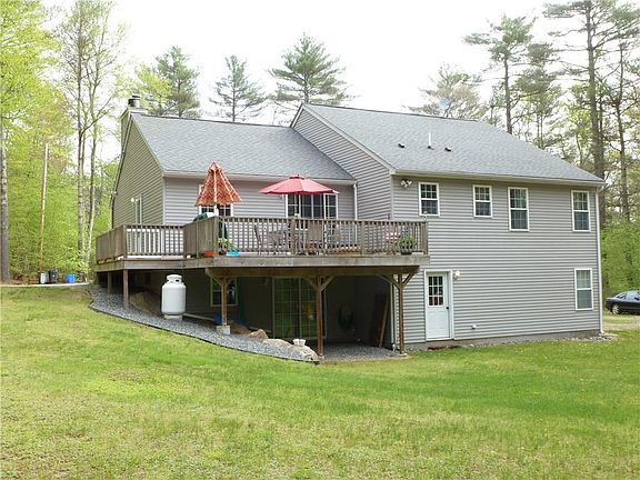 Enjoy quiet country living in this impeccable one level 3 bed 2 bath custom built ranch. This home features cathedral ceiling living room with fireplace, hardwoods, master bedroom with large master bath, new paint, laundry on first floor, eat in kitchen with slider to deck, large 2 car garage, private 5.11 acre yard with 543' frontage, large walkout basement with walkout ready to be finished, award winning Ponaganset school system. Wont last, Call today!