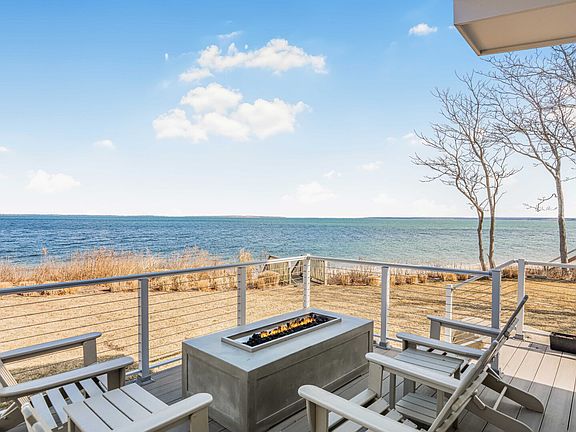This newly built, six-bedroom, 4.5-bathroom estate is a true sanctuary, offering an unparalleled escape for travelers. Ideally situated just moments from town, pristine beaches, and renowned restaurants, this exclusive residence is designed for relaxation and indulgence. Step out of bed and onto the beach, where the gentle sound of the waves sets the tone for a perfect day. With a private beach, expansive outdoor deck, and panoramic water views, guests will find themselves immersed in tranquility from the moment they arrive. Vaulted ceilings, floor-to-ceiling windows, and an open-concept floor plan invite an abundance of natural light, seamlessly blending indoor comfort with the beauty of the outdoors. Every detail, from the coastal-inspired decor to the state-of-the-art kitchen, has been thoughtfully curated to provide a five-star experience.Step outside and discover an oasis of serenity and privacy. This waterfront haven offers total seclusion, ensuring an intimate and peaceful getaway. Guests can unwind on the sprawling outdoor deck, which features multiple sitting areas perfect for enjoying morning coffee or evening cocktails while basking in the stunning water views. The gas fire pit and outdoor fireplace offer the ultimate spots for relaxation and a cozy ambiance for starlit conversations. An alfresco dining area provides the perfect setting for unforgettable meals with family and friends, all against the backdrop of the shimmering water. With ample parking and easy access to the private beach, every moment here is designed for ease and enjoyment.Upon entering this exquisite home, guests are greeted by an airy, open layout that exudes coastal sophistication. The vaulted ceilings and floor-to-ceiling windows capture the stunning waterfront setting, allowing natural light to flood the space. The spacious living room, anchored by a plush sectional and a cozy fireplace, invites guests to gather and unwind in style. Flowing effortlessly into the dining area, the home's thoughtful design makes entertaining effortless. The fully equipped, modern kitchen is a chef's dream, featuring high-end appliances, a coffee maker, and all the cooking essentials needed to prepare gourmet meals. A central island with seating makes it the perfect space for casual gatherings or evening wine tastings. Throughout the home, elegant furnishings, soothing neutral tones, and coastal accents create an ambiance of understated luxury.Each bedroom is a private retreat, designed for ultimate comfort and rest. Fresh linens, plush bedding, and tasteful decor ensure a peaceful night's sleep. The primary suite is a sanctuary unto itself, featuring a private deck with sweeping waterfront viewsan idyllic spot for morning meditation or a quiet escape with a good book. The additional bedrooms offer a mix of king, queen and full accommodations, perfect for families or groups of friends. A dedicated den with a television and work-from-home station caters to those who need a quiet space for remote work or relaxation. The finished lower level includes an extra sofa and living room space, where guests can enjoy film nights in a stylish, comfortable setting.Beyond the luxurious amenities of the home, guests will find themselves immersed in the best that Hampton Bays has to offer. The property is conveniently located near an array of local attractions, including top-rated restaurants, charming shops, and vibrant art galleries. Spend sun-soaked days at nearby beaches, explore picturesque parks, or take a scenic drive to the region's renowned wineries and farm stands. Whether seeking outdoor adventures, cultural experiences, or gourmet dining, everything is within easy reach, with some attractions even walkable from the home.This exceptional waterfront retreat is more than just a vacation rentalit's an experience. From sunrise yoga sessions on the private deck to evenings by the fire pit under a canopy of stars, every moment here is designed to be unforgettable. Whether visiting for a family getaway, a romantic escape, or a special occasion, this Hampton Bays haven offers the perfect blend of luxury, comfort, and natural beauty. Your dream coastal getaway awaits.
