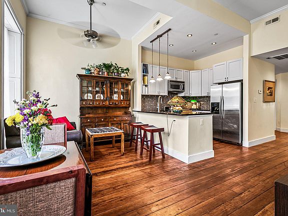 More than a home, it's a testament to a lifestyle where right-sized living is treasured and true walk-ability celebrated with summer strolls in nearby Mount Vernon Place, or enjoying food and fun at the uber chic Ash Bar. Conveniently located to the Peabody Institute, Walters Art Gallery, Maryland Historical Society, Engineers Club, MICA, JHU, JHH/JHBSPH Shuttle, and Penn Station. This second floor walk-up condo sports a granite/stainless kitchen, 38” cabinets, Murano mosaic glass tiled backsplash, 11 foot ceilings, authentic shutters, crown molding, fireplace mantel, original hardwood flooring, plus there is an additional 650 square feet of lower (basement) level storage space comprised of two rooms and a full bath. The space is ideal as an art studio, music studio, practice rooms, or even separate spaces for two home offices. The space has 8 foot ceilings, windows to the front as well as to the back courtyard, cable connections, separate heat controls in each room, and a utility panel to accommodate future improvements. Condo residents have access to a rooftop deck, and a tranquil rear courtyard replete with window boxes, garden herbs, blooming vines and lighted trellises for evening get togethers.