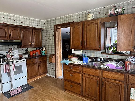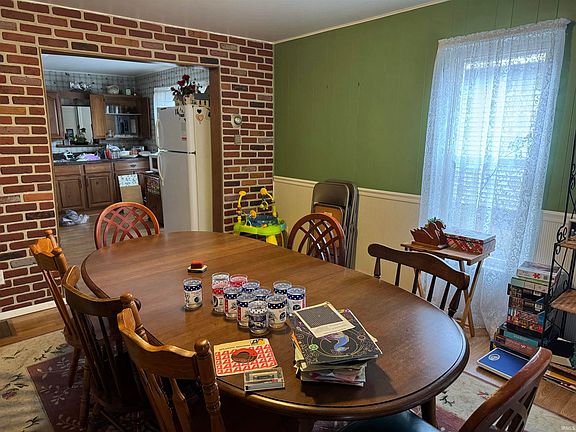 Well loved Vinyl SidedRanch Home on Evansville's Northside featuring 2 Bedrooms, 1 Bath, and a 2.5 Car Detached Garage. Inviting covered front porch leads you into the Living Room with Z-brick accent wall and laminate flooring (currently being used as a dining room). Applianced eat-in kitchen with lots of cabinetry and access to both the Family Room and the Second Bedroom. Fantastic Family Room with plush neutral carpeting and sliding patio door to a covered deck. The Primary bedroom is very spacious and adjoins the second bedroom. The full bath features a tub/shower combination and is accessed through the second bedroom. Across the back of the home is a Delightful covered deck; perfect for sipping lemonade and watching the sunset. A mostly chain-linked fenced backyard has a garden area already in place. The detached 2.5 car garage has and opener and 2 remotes-It is a mechanics dream!!! The home is in the process of being cleared out; which should be completed in 30 days. Great location near the Greenway Project and close to shopping, entertainment, and schools.