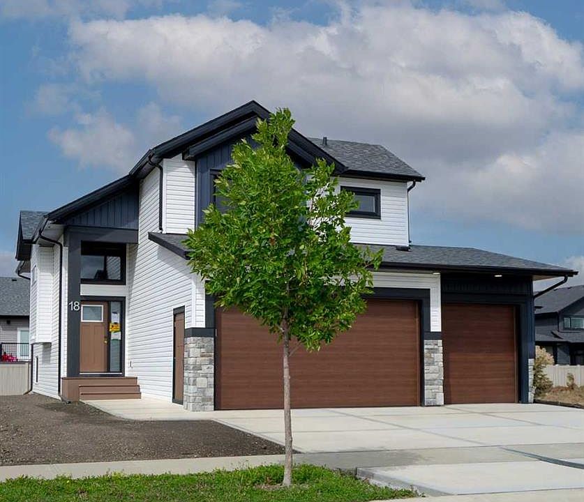 IMMEDIATE POSSESSION AVAILABLE! Brand new FULLY Developed (2141 SQ. FT. OF LIVING SPACE) 3 bedroom 3 bathroom modified bi-level with TRIPLE attached garage. This fabulous home is located in Timberlands North, close to shopping, schools, Canyon Ski Hill, Riverbend golf course with easy access to the highway and north/south Red Deer. The main floor has a beautiful open kitchen/dining room living room design. The kitchen is finished with quartz counter tops, a large Island and black stainless steel appliances. The living room has plenty of natural light and a large linear electric fireplace-flooring is luxury vinyl plank. There is also a 4 piece bathroom on the main floor and a good sized spare bedroom. The master bedroom is located up a few stairs with large walk in closet with custom shelving and a 4 piece ensuite with his/hers sinks and stand up shower. The lower level also has an abundance of natural light and has a spacious family room, finished laundry room with black stainless steel washer dryer, 4 piece bathroom and another bedroom-flooring is carpet. The lower level has roughed in under slab heat, roughed in central vac. Outside you will find a finished rear deck with aluminum railing, a gas line for barbecue, a fully sodded front yard and rear fence. This home comes with a 10 year new home warranty.