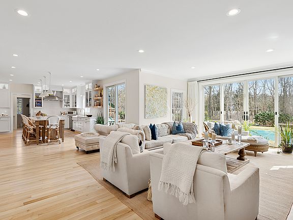 Rental Registration #: RP109344 Escape to the beauty and tranquility of Sagaponack with your family and friends. Enjoy the newly renovated, designer-decorated, spacious 5,100 sq ft, 5-bedroom, 5-bathroom house, which sleeps up to 10 people in comfort. The 1.7 acre property features a backyard paradise with large pool, built-in hot tub and fire pit in a large bluestone patio stretching the entire length of the house.The property is in a superb location in one of the most sought-after zip codes in the Hamptons. All destinations are easily accessible. It is a 7-minute drive south to the Atlantic beaches (15 minutes by bicycle); 7-minute drive north to Sag Harbor village; and 6-minutes to the center of Bridgehampton village. East Hampton village is 12 minutes away. The award-winning and luxurious Wolffer Estate Vineyard is only a mile away. The Sagaponack Farm Distillery is even closer. The house is privately located on a long beautiful residential street of magnificent homes. The location is ideal because virtually any destination is easily accessible without driving on Montauk Hwy (Rt. 27).The home's interior is bathed in light. Enter through the over-sized double glass front doors into a two-story entrance foyer graced by a beautiful chandelier. The open-plan first floor features a brand-new designer kitchen with high end appliances and cabinets, and a 9.5 ft. center island, with sliding glass doors to the patio and pool. The well-equipped kitchen, designed for entertaining, opens to a spacious living room with oversized glass doors leading out to the large bluestone patio. The adjacent large dining room has a built-in serving bar with a wine fridge. A cozy den leads out to a large wrap-around furnished porch with a furnished gazebo overlooking the front gardens. The first-floor bedroom, which is also used as an office, includes a double bed. A full bathroom is adjacent.The rear bluestone patio runs the full length of the house and offers a built-in spa, fire-pit and 40' heated pool, all surrounded by landscaped gardens. The patio includes a large dining set and Weber grill connected to the central gas supply. There is a well-furnished "living room" area at the other end of the patio near the spa. Lounge chairs and tables grace a separate patio at the south end of the pool.There are four bedrooms on the newly-renovated second floor. There is a large master suite with double-door entry. It features a 4-poster king bed and its own romantic fireplace with a large walk-in closet. The over-sized master bathroom offers a large glass-enclosed shower and soaking bathtub. A junior suite includes a king bed and private bathroom. There are two more bedrooms down the hall: one with a king bed and the other with two queen beds. Adjacent, there is a large bathroom with shower, bath and double sinks. There is a billiards room with full size pool table and TV at the end of the hallway.The large brightly-lit basement provides another multi-function living space. It includes a state-of-the-art media room with 100" TV and theater seating, well-equipped gym, large recreation room and children's play area, wet bar with beverage fridge, and full bathroom. There is a glass exterior door that leads up a stairwell to the backyard patio. There is a full-size auxiliary refrigerator/freezer in the utility room.In the evenings, enjoy dining inside or alfresco, out on the patio, where you can huddle around the gas fire-pit. You will appreciate the privacy of the beautiful 1.70-acre grounds. Other amenities include a multi-room/patio Sonos sound system, outdoor lighting, play gym, 4 bicycles, multiple TVs, and an EV/Tesla charging station in the two-car garage. The beds/baths have high end mattresses with white, sanitized, pure cotton sheets, linens and towels. The modern kitchen is fully outfitted with new dishes, cutlery and glassware. The property has high speed internet service that covers the whole house and extends to the patio/pool/spa/porch areas.The house will be immaculately cleaned and prepared for your visit. References available upon request.