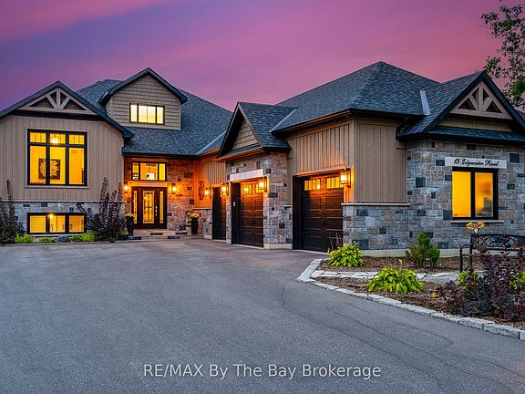 Sitting majestically on one of the most spectacular riverfront lots on the Nottawasaga River in beautiful Wasaga Beach you will find this newly built 4180 Sq. Ft. custom home crafted by professional home builder Father and Son Construction. At every turn of this property exudes quality both inside and out with the exceptional attention to detail and exterior features to make it the ultimate riverfront oasis located on one of the premiere streets lining the prime boating segment of the river and amongst many custom homes. The well thought out main floor design begins with a welcoming entrance with its expansive foyer that takes one to the grand open concept main floor with cathedral ceilings and panoramic windows with stunning views of the river. The gourmet kitchen would delight any chef with its large island with prep area, 6 burner plus grill gas stove and 5 ft fridge and freezer along with custom cabinetry and accent lighting. Adjacent dining area with stunning trey ceilings for all family meals with access to a large covered deck for outdoor entertaining. Grand primary bedroom with spa like ensuite and large walk in closet. Meanwhile additional large 2 guest bedrooms, perfect for guests in the bright fully finished lower level with its 9ft ceilings, in-floor heating and expansive windows offers exceptional river views with a walkout to a backyard entertaining paradise with all custom stone walkways and landscaping. Experience sunset cocktails at the custom built outdoor bar and fire pit area before experiencing all your favourite riverfront activities or a dip in the hot tub. Other features include radiant in floor heating in your triple car garage, security system and so much more. This exceptional one of a kind property sits on a rare 75 ft riverfront lot that provides privacy and a haven for the ultimate riverfront lifestyle.