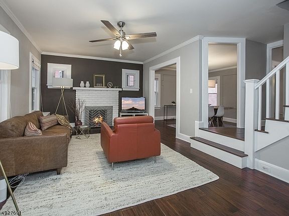 AMAZING! An updated Glen Ridge Craftsman Colonial just blocks to NYC train and top rated schools with two full baths, finished basement and laundry room just does not come along this often! With an airy and open first floor taking its cue from the welcoming front porch, unexpected updates include teak-style floors, spacious dining room and large kitchen with soapstone counters, furniture-grade cabinets and stainless appliances (refrigerator 2018). Second floor bath updated by prior owners has tumbled marble floors, custom vanity sink. White washed plank floors and eyebrow windows can create a unique 4th bedroom or office. Get tired of the picture-perfect lemonade porch? There's a paver patio close to new plantings in back. Exterior painted, hot water heater 2019. New boiler 2016 and flue relined.