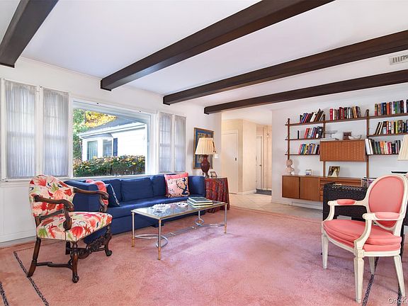 Enjoy The Convenience Of Single Level Living - 1,813 sq ft, 4 BR, 2.5 Bath Ranch - Plus 400 sq ft Finished Walkout Basement Rec Room - Quiet Neighborhood - Seasonal Hudson River Views - Prestigious Riverview Manor - Excellent Walkability To All Village Amenities - 40 Minutes To NYC By Train or Car. - MAIN LIVING WING: Entry via covered front porch ** LR w/beamed ceiling, picture window & wood-burning fireplace ** Dining room w/floor-to-ceiling windows & door to enclosed back porch ** Bright, updated eat-in kitchen ** Enclosed 3-season porch (160 sq ft) w/doors to patio, yard & garage ** Updated hall bath #1 ** Family room w/large bay window & hdwd flrs - BEDROOM WING (all 4 BRs are on main level): 4 bedrooms w/hardwood floors including MBR ** Master BR w/three windows, hardwood floors & 2 walk-in closets ** Hall bath #2 - WALKOUT BASEMENT: ** 400 sq ft finished rec room w/door to patio, 1/2 bath & walk-in cedar closet - Mechanical/Laundry room (unfinished) - AMENITIES: Level property w/mature shade trees ** NEW heat pump for heat & central A/C (2025) ** 1 car attached garage plus extra wide driveway for additional parking ** Village of Dobbs Ferry ** Dobbs Ferry Schools ** Dobbs Ferry train station parking privileges - EXCELLENT WALKABILITY TO: Old Croton Aqueduct Trailway, downtown Dobbs Ferry, Hudson Riverfront Park, train station, shops, restaurants, athletic fields & parks - CONVENIENTLY LOCATED: 40 minutes to NYC by train or car ** 15 minutes to Mario Cuomo Bridge ** 20 minutes to downtown White Plains - LOCAL RECREATIONAL AMENITIES: Old Croton Aqueduct Trailway (the OCA), Dobbs Ferry Hudson Riverfront Park, Memorial Park, Gould Park featuring athletic fields, basketball courts, playground & resort-style swimming pool & the 75 acre Juhring Estate Nature Preserve