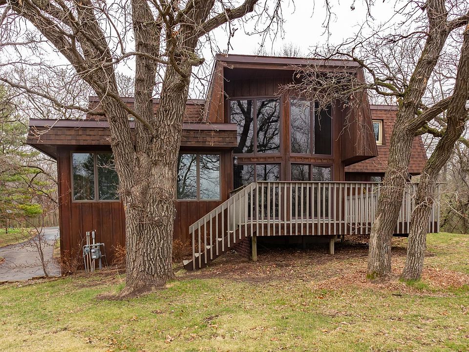 Rare find! Unique, 2-story house with shop on large, wooded, one-acre lot. 4 remodeled bedrooms and 4 bathrooms. Beautiful 3-season porch with lots of natural light. Shop features heat & A/C with additional space on the upper level!
