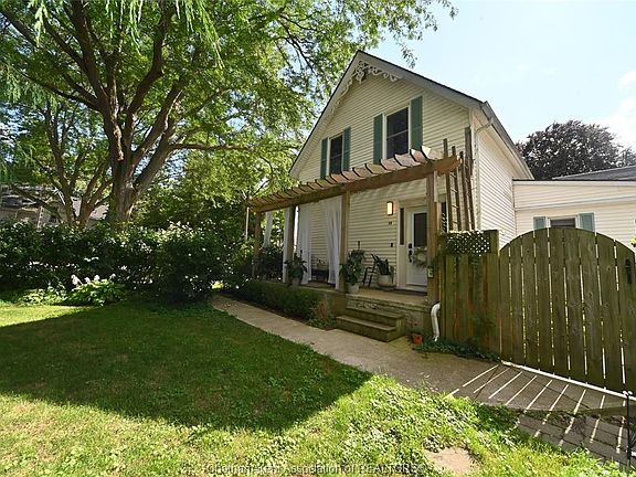 This 3 bedroom Victorian beauty embodies all of Ridgetown's classic small town charm and character. From the gingerbread gable trim outside and breezy private front porch shaded and hidden from street view by mature trees and gorgeous rose of sharon hedges, to the original interior wood trim and hardwood floors with window aprons, original bannisters and the decorative arch between living and dining rooms. High ceilings and large windows create an airy interior with light neutrals. The kitchen and both full bathrooms are delightfully done. Upstairs are two bedrooms (one being a very large primary) and a bathroom with tub/shower and on the main floor is another bedroom with cheater entry to the full main floor bathroom. What's unique here is that the main floor is set up for a separate unit (currently used as an Air BnB) with the aforementioned bedroom, bathroom and a kitchenette/den able to be self-contained with rear entrance access, great for mature family shared living or extra income. If not, the layout still works when used as a whole home. There's also an ideal sitting spot in the enclosed porch off the kitchen, an office nook, and the sweetest little loft to hide away in, above the main floor laundry room. Fenced area for dogs, kids, or separate outside Air BnB space and a detached single car garage. If you're searching for the simple life in surroundings that couldn't be more quaint, this is it!