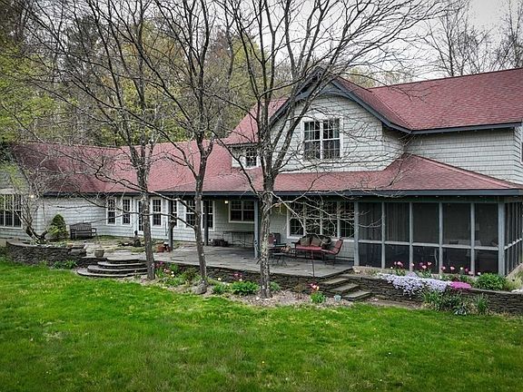 A unique opportunity for the discriminating buyers looking for quality, craftsmanship, landscaping and privacy. This Arts & Craft style home was architecturally designed and built with attention to detail. Generous use of Goshen Stone is integral in the design with walks, walls, porches and landscaping. Once you enter either the mudroom or front foyer, you sense the warmth and charm of this home. Gathering and getaway spaces are on three floors. Home has 4 bedrooms, 3.5 baths, built-ins and room to spread out. Dramatic great room with hand hewn ceiling, captivating fireplace and access to a Japanese Garden. Cherry Kitchen with granite counters, pantry, office area, and wet bar. Close to 800 s.f. over the garages could be developed into a home office or in law space. Solar Panels are fully owned. Beautiful spaces throughout this home. So much more, come Explore!