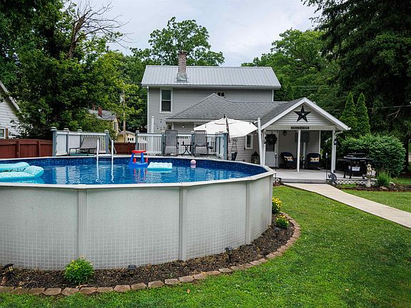 All the right things have been done to this turn of the Century Beauty, and it is located in the most classic neighborhood of a recently named top 10 most peaceful city in Indiana. Everything is in place to move right in and enjoy immediately- current colors, modern updates, secluded outdoor living. Unusual for a home of this age, it also has an open concept feel between the kitchen/living/dining areas. Bed 1, bath & laundry is located on the main level, 3 bedrooms & a bath upstairs. Wrap around front porch that visitors often comment on, and a newer composite deck off the back. Step into this wonderful backyard secluded by a fence and mature trees. Above ground pool included and ready for a cooling dip the day you move in. Large driveway space, garage used for storage and entertainment, storage shed, & Fire pit. This Home is the one you have been waiting on! Call Today.