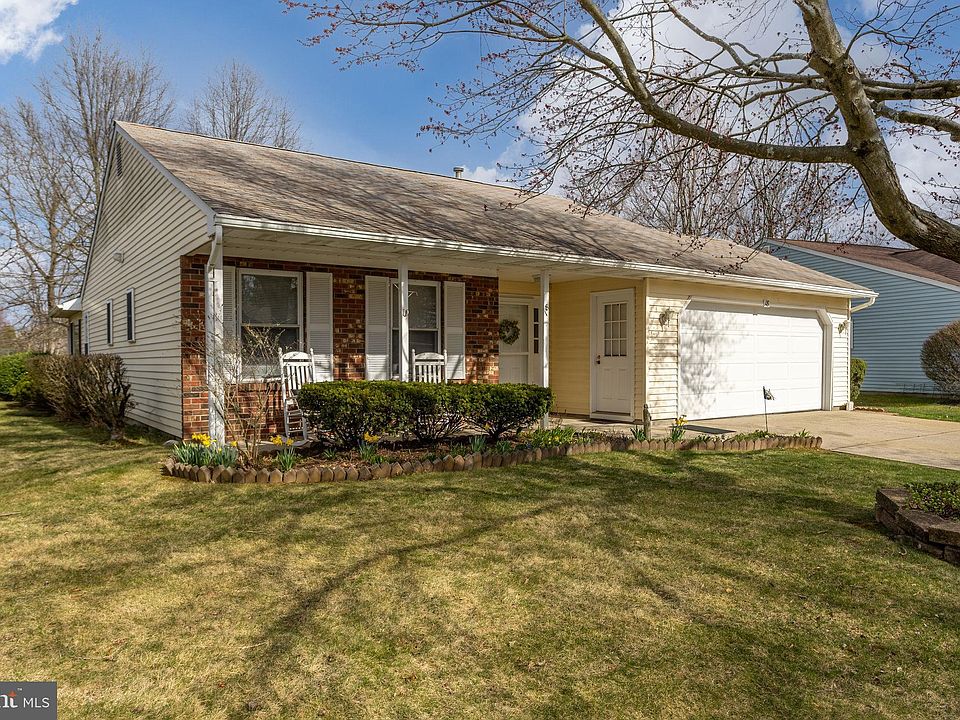 Welcome To Homestead at Mansfield in Columbus, New Jersey. Established active adult gated community aged 55 yrs and better. This ranch style home, expanded Biscayne model features 2 car garage with inside access to foyer. Nice size kitchen with white cabinets and white appliances. Open style dining area looking into the ex large living area, with sliding doors onto outside patio, with extended awning cover for the sunny days over the patio area, enjoy the private park like setting on large lot. Walk back in from the patio pass through the extra sitting room to the French doors in to the large Primary Bedroom and adjoining Primary Bath room, closet area with another doorway access in the bedroom to the hallway across from the kitchen. Hall Closet holds washer & Dryer. Second bedroom down the hall , nice size with guest bathroom and walk in bath tub/ soak/shower by Premier Care. Exit the front door to sit and relax on the front porch, or take nice stroll on the walking paths. Their large clubhouse has activities for its residents which include fitness center, hobby rooms for arts, crafts or card playing & billiards. Take a dip in the heated pool and enjoy the tennis, bocce ball and shuffleboard courts, with all these amenities no wonder why this is a sought after adult community to join. Close to shopping, easy access to major highways for traveling to AC or the Jersey Shore. Don't miss out on this gem !