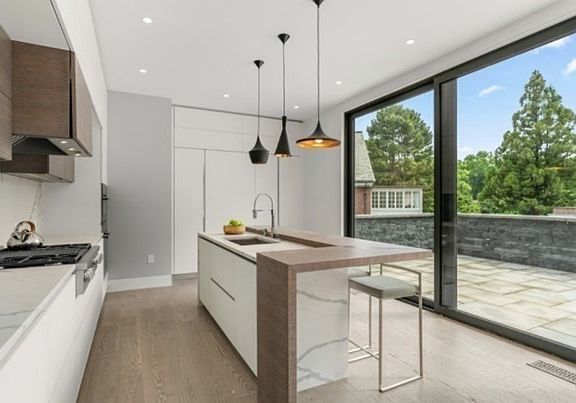 Carefully curated by a local renowned builder, this state of the art modern marvel located on Fisher Hill brings convenient luxury living with an urban, contemporary feel. 20' ceilings and oversized windows flood natural light throughout all living levels. The custom chef's kitchen with Miele® appliances opens up to the expansive patio and spacious private yard, ideal for enjoying true indoor-outdoor living in a time where everyone covets extra green space. A comfortable family room, dining room, guest bed/office space and laundry room round out this level. Take the elevator upstairs to the master wing, boasting paramount custom marbled bathroom and two generously sized walk in closets. 3 additional bedrooms, 3 bathrooms, a second laundry room and a private roof deck with views of the Brookline reservoir complete this level. Close proximity to Longwood, Chestnut Hill shops and restaurants, highway access, and public transit.