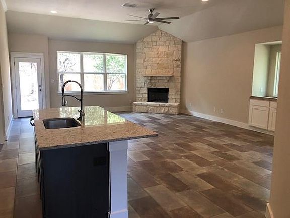 New construction 4/2 that is ready for move-in. Home offers open floor plan. Kitchen offers granite counters, s/s appliances including fridge, and walk-in pantry. Additional storage in dining room. Wood burning fireplace in living room. Covered patio. Professional photos coming next week.
