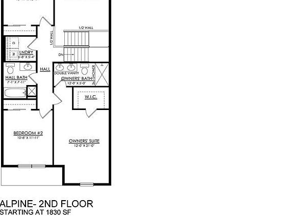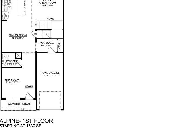 Welcome to the Alpine. As you enter this home through its charming covered front porch, you're greeted by a welcoming Foyer and Flex Room that can be used as a Study or additional lounge area. Continue past a well-located Powder Room to the Dining Room that's perfect for hosting everything from lavish dinners to everyday meals. The Kitchen features an large island with an overhang, providing an additional seating area for entertaining or a quick bite to eat. The adjoining 2-story Great Room makes this floorplan even more spacious and includes a sliding door leading to the backyard. A 1-Car Garage and conveniently located Mudroom finish off the 1st floor layout. Upstairs you'll find a spacious Owner's Suite with a walk-in closet and its own private Bath with a double vanity and large 3' x 5' shower. Two additional Bedrooms, a shared Hall Bath, and 2nd floor Laundry Room can also be found upstairs.