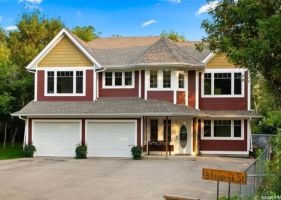 LOCATION. PRIVACY. SPACE. Welcome to 18 Frederick St, a truly rare find in the highly desirable Erickson Heights—right on the edge of Fort Qu’Appelle. Nestled among mature trees on a beautiful private 0.92 acre lot, this one-of-a-kind property offers over 2,600 sq ft of thoughtfully designed living space & everything you need for comfortable family living. Step inside this custom-built, original-owner home, designed on a slab with both in-floor heat & a natural gas furnace for year-round comfort. The main level offers incredible versatility, featuring direct garage access, a spacious den/boot room (ideal for a home office or extra bedroom), a large recreation room with access to the backyard with covered patio, two bedrooms, a 3-piece bath & designated mechanical and laundry space. Upstairs, the heart of the home shines. The kitchen is a delight—complete with a walk-in pantry, large eat-up island & open flow to the dining area with direct access to the upper deck overlooking the park-like yard. The living room is generous & inviting, perfect for gatherings or quiet movie nights. Down the hall, you’ll find an office, two additional bedrooms, a 4-piece main bath & a primary retreat with its own private 3-piece ensuite. Expansive windows throughout flood the home with natural light and offer peaceful valley views in every direction. The property continues to impress outdoors. It offers an attached 20x22 garage, a 30x40 quonset (with 12x12 & 5x6 overhead doors), underground sprinklers & a paved asphalt driveway. Recent updates add peace of mind, including new shingles (2023), a new water heater (2023) & a SaskPower GenerLink for easy generator hookup. The home also has its own private well and septic. If you’ve been waiting for a spacious, well-cared-for home on a private treed lot just minutes from the valley’s amenities—this is it. 18 Frederick St — A rare blend of comfort, privacy & location. Don’t miss your chance to call it home!