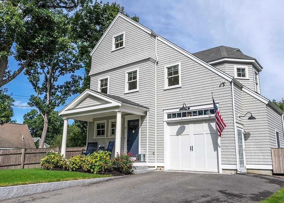 Don't miss out on this bright and sunny Modern Farmhouse located in Hingham's coveted Worlds End, nestled between Hingham Harbor and the Weir River, featuring miles of walking trails. The entry, with custom built ins, leads into the open concept gourmet kitchen, dining and living room with 8" Oak floors. The kitchen features a professional gas range, pot filler, quartz counter tops, farm sink, expansive island, pantry and beverage center with wine fridge. The kitchen flows directly into the Dining and Living room which has a home theater system, gas fireplace and sliding doors leading out to the Bluestone terrace. The second floor includes 2 large bedrooms, one with an en-suite bath, a laundry room, hall bath and expansive bonus space. The dazzling third floor Primary Suite features a large custom closet and luxurious bath with rainfall shower, free standing tub and double vanity with marble counter. Smart Home w/sensor based lighting and programmable NEST thermostats. Welcome Home!