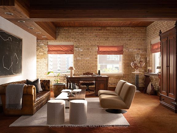 Tucked discreetly behind Yonge Street, 18 Gloucester Lane is a building of rare architectural character and meaningful cultural history. Built in 1912 and thoughtfully modernized, this five-storey buff brick building remains one of Toronto's most evocative and understated landmarks, offering discretion, cultural provenance and centrality. Behind its timeless façade lies over 9,700 sq ft of space shaped by exposed brick and beam, arched windows and generous industrial proportions. For over four decades, the building was the production headquarters for Norman Jewison - one of Canada's most internationally acclaimed filmmakers. From within these walls, major cinematic works were developed, produced and edited. And the building continues to carry that quiet sense of intention and purpose.Once production workspaces, the lower four floors now function as self-contained modernized offices with kitchenettes, washrooms and elevator access on each level, operating seamlessly as a boutique investment. Above, the building's essence reveals itself in the fifth floor penthouse residence - Jewison's former pied-à-terre. Retaining its cinematic atmosphere, the main level features a generous living salon area anchored by a herringbone brick fireplace, an open office, full kitchen and a concealed private office. A hidden staircase leads to a half-storey, where the bedroom, dressing room and bathroom form a private retreat. Positioned within the Historic Yonge Street Heritage Conservation District, 18 Gloucester Lane invites stewardship. Its architecture, history and placement within the city's cultural fabric offer the chance to continue a legacy of meaning and significance. The building's scale, discretion and location invite more possibilities: continue as a boutique investment property, adapt to a private family office or foundation, a design studio or gallery, or a fully integrated live/work private residence. A building shaped by its past, ready for its next chapter.