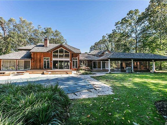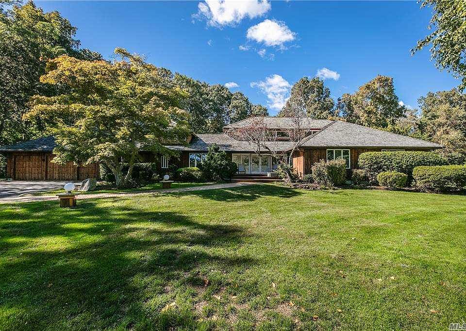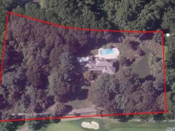 This large (5,600sq.ft.) dramatic farm ranch sits near the end of a private meandering road bordering the Nissequogue Golf Course. Overlooking the 11th green, this classic home features cedar siding and a recently replaced cedar shake roof. The open floor plan features a master suite on the 1st floor, a separate guest suite and an incredible media/entertainment center. The 3.5 private acres offers walking trails, fish ponds, free form in-ground pool, tile patio surrounding the pool, mahogany decking and room for a tennis court.