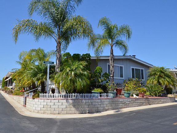 Financing available. Easy living for Seniors. Bandera Estates home, located on a corner lot, with a garden-like setting, offers you two bedroom and two bathrooms with two large patios. Master bedroom has its own attached bathroom. Beautiful kitchen, overlooking the patio area with built in oven and walk in pantry. Separate family room and living room with fireplace. Individual laundry room located inside the home. Large back yard has nice sitting area, built in a storage shed for extra necessities. Newer roof, air conditioning unit and water heater. Enjoy community pool and entertainment area. Walk in distance from Brea mall, movie theaters, and post office.